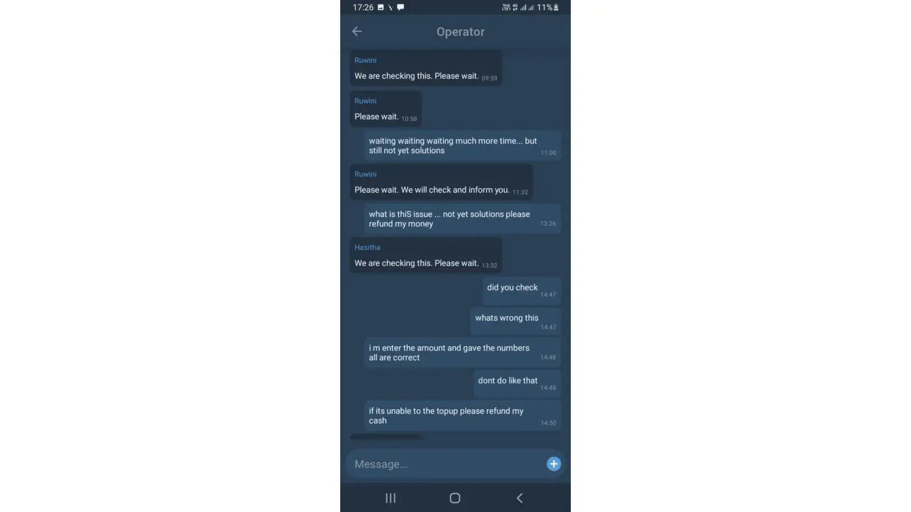 I have Deposit Rs.2000.00 at 26/06/2023 & it reject by operator. I have inform to your customer support team several time but not respond to my mail.