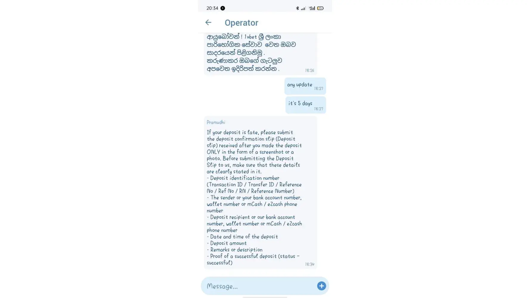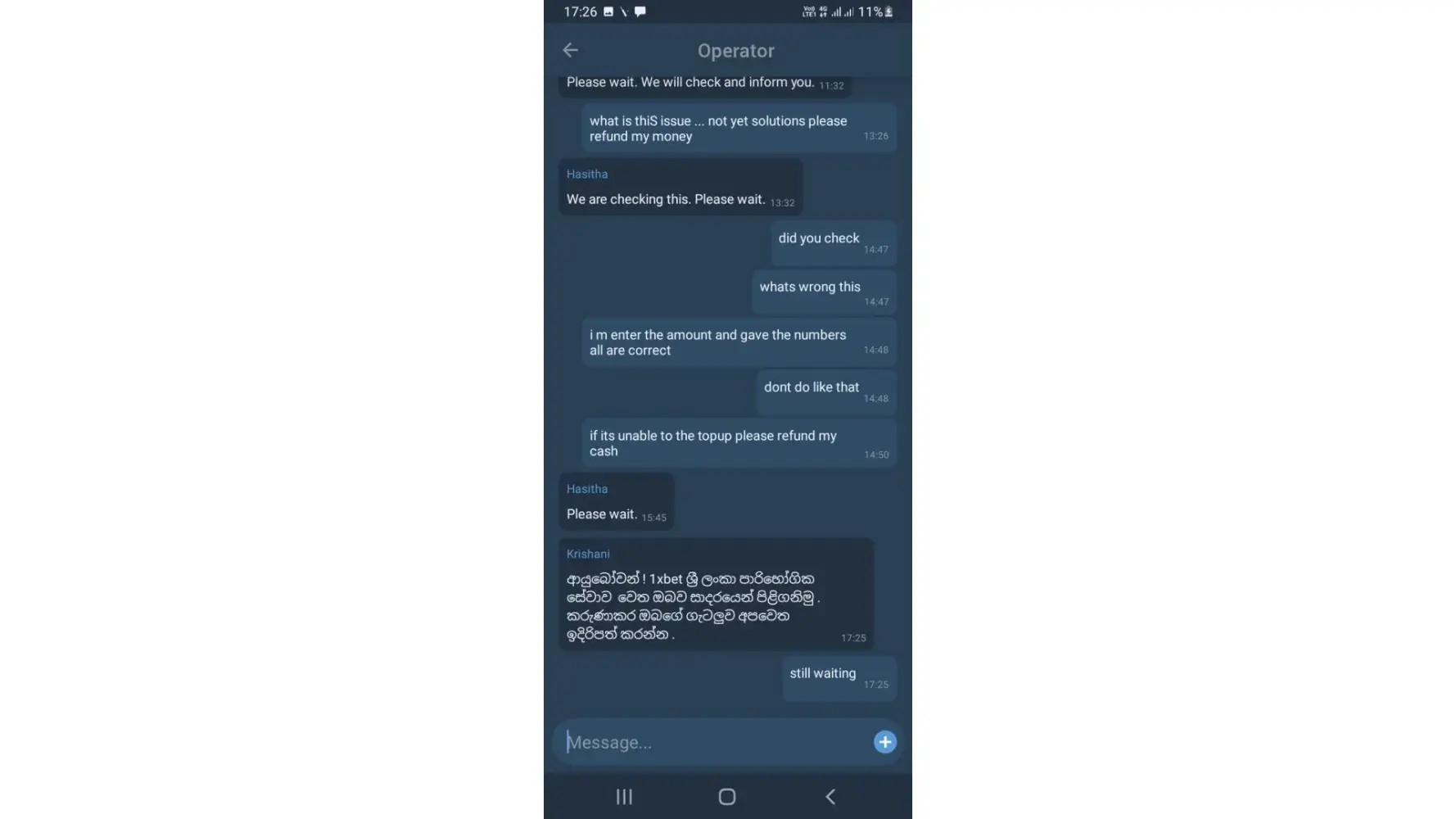 Many Sri Lankan 1xbet users experienced same incident.