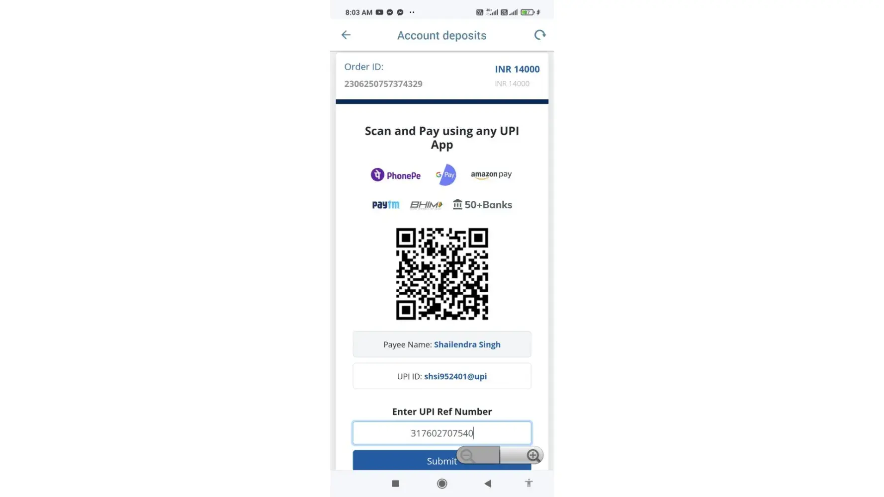 Mene 14000 deposit kiye the 25/06/2023 ko, lakin aaj 20 days ho gye abhi tk paise nhi aye, mene customer support pr bhi complain dali to unhone bola bank statement dedo ho jayega mene wo bhi diya lakin ab wo bol rhe hai ki bank se confirmed krao, bank walo ne bola account statement me already confirmed hai ki 14000 debit hue but abhi tk credit nhi hue hai