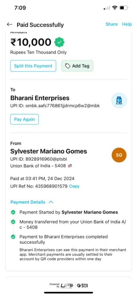 Bharani Enterprises UPI ID:
