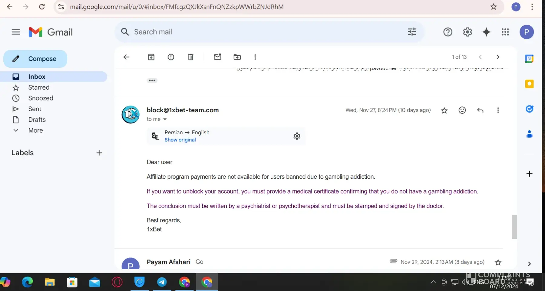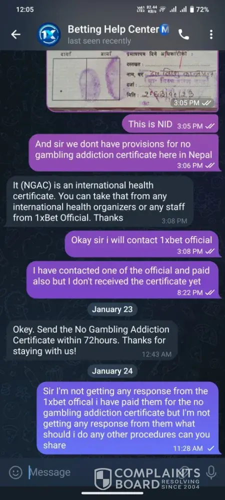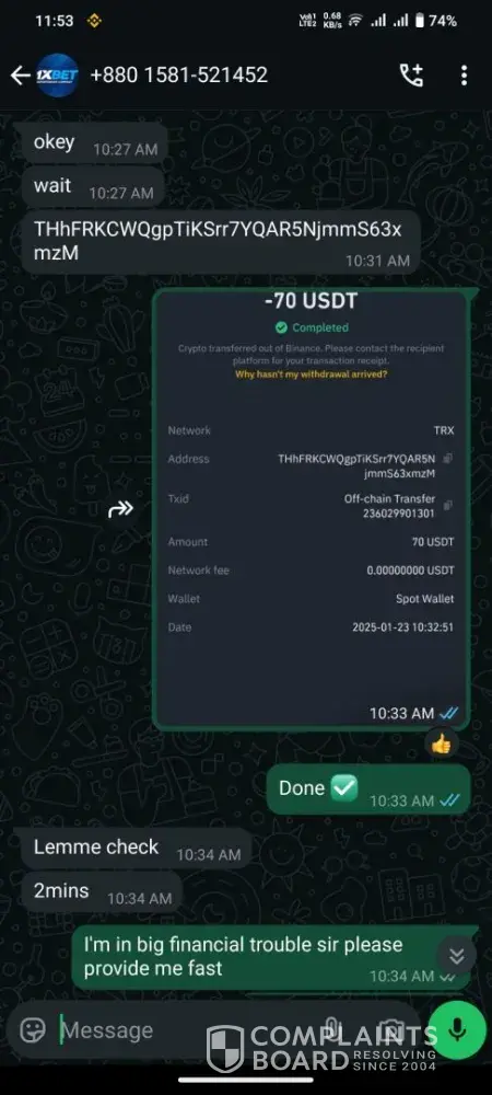 1xBet Complaint 1353