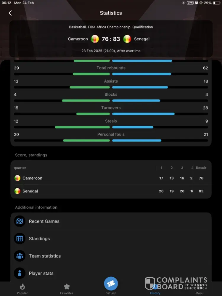 I saw volleyball match on application and i bet on it the last score was 23- 19 for team number one and i was bet on team number one the bet was on set number 3 suddenly i found the application changed score to be 19 -23 so its mean team number 2 will win mean make me from win to lose its not my fault so i contacted with customer service and they like always speaking rude and ignore and spam like robots , the problem this thing happen before but it was live match on screen and they make refund for me and said its employer fault because i won but this time they refused to make refund or make me won so i recommend you guys dont use this application they are band of scammers with wrost customer service in our planet after bet for 2 years active everyday i decided to exit from this scammer website and searching for trusted website so i dont recommend everyone with 1xbet and if you have another application i can trust on please let me know