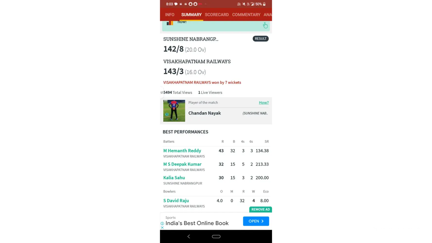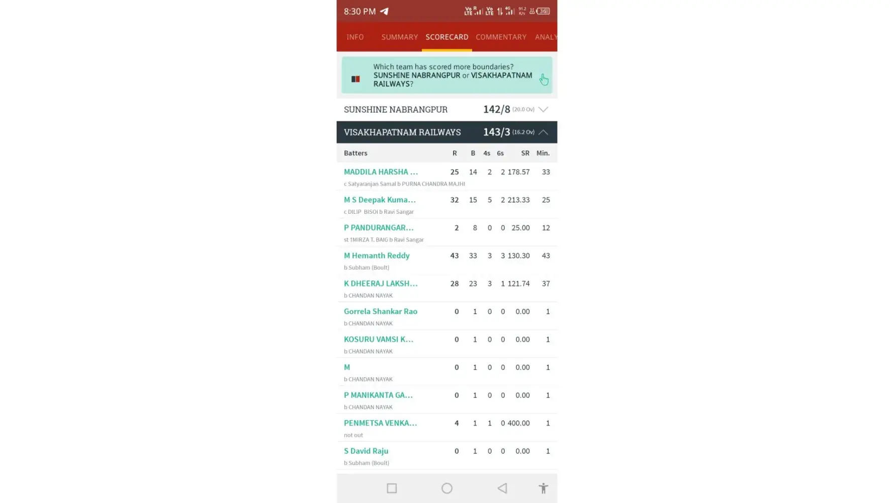 Official Scorecard - https://cricheroes.in/scorecard/6391660/M.G.-SRIVASTAVA-MEMORIAL-CRICKET-TOURNAMENT-2023/SUNSHINE-NABRANGPUR-vs-VISAKHAPATNAM-RAILWAYS