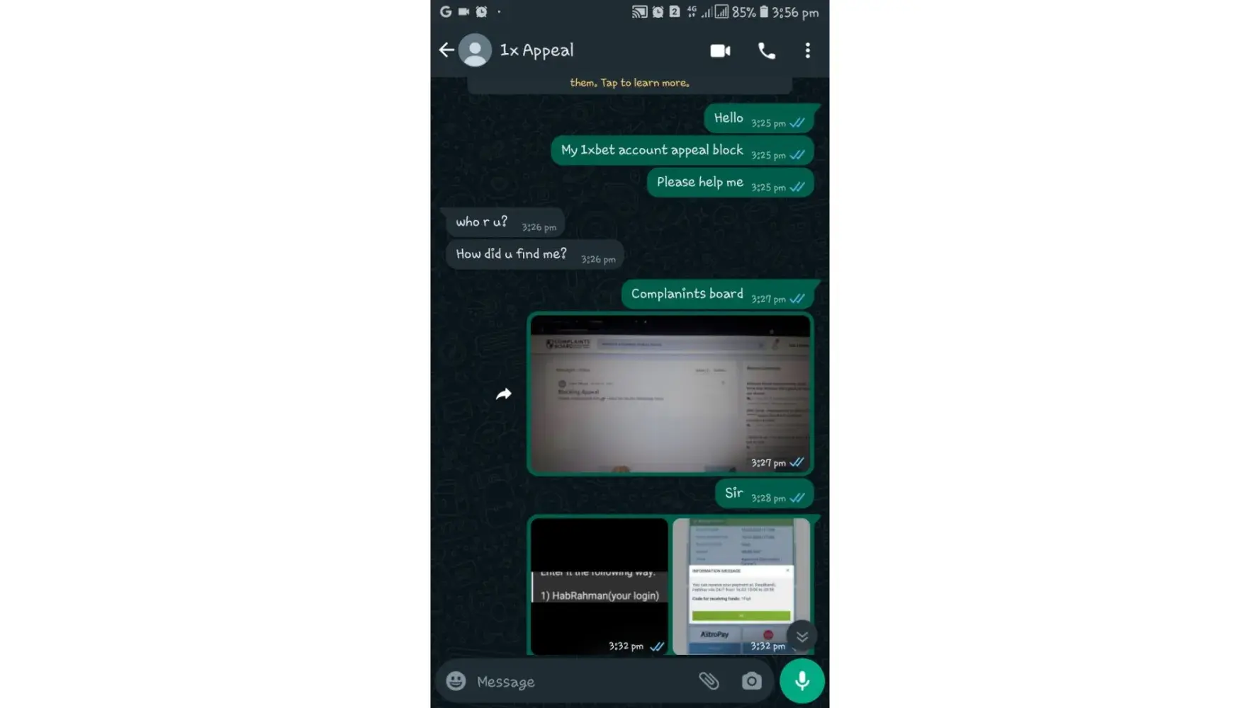 My account has been blocked by the company. I tell my problem on this complaints board. Then they message me the whatsapp number of a person. When I contacted him, he told me that no gambling addiction certificate is required to fix the account. He says it will cost 13378 rupees to take it. I gave him 5000 rupees. He says he will take the remaining money if the account is fine. Now he killed my 5000 rupees.What is the point of talking about problems here. not resolvedÂ