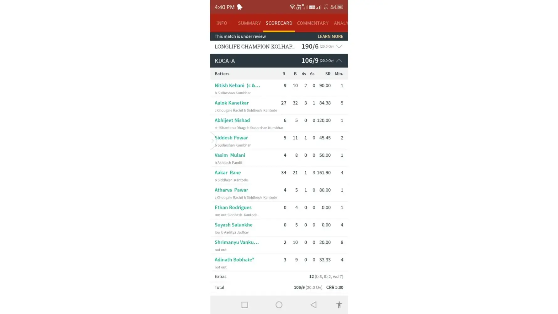 Dear 1xbeg you sent me wrong link match .I'm talking about longlife champion and Kdca-a team match please check scorecard also