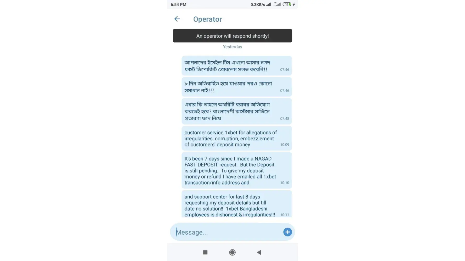 I have contacted customer care many times they respond to wait it's been more than 4 days. I have given all the requested proof like screenshots and bank statements still no response from 1xbet. Worst customer support how long do they need to solve small issues with all proof. Unable to upload bank statement in pdf here