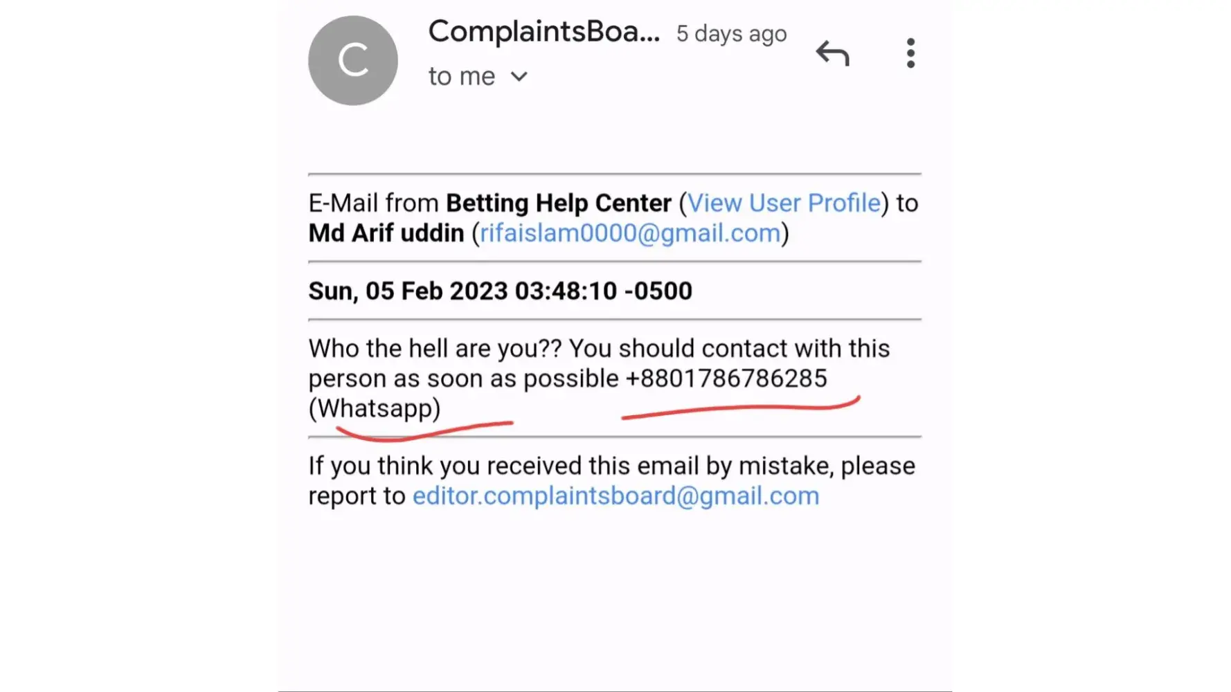 1xbet does not ask to contact someone via email with their WhatsApp number.