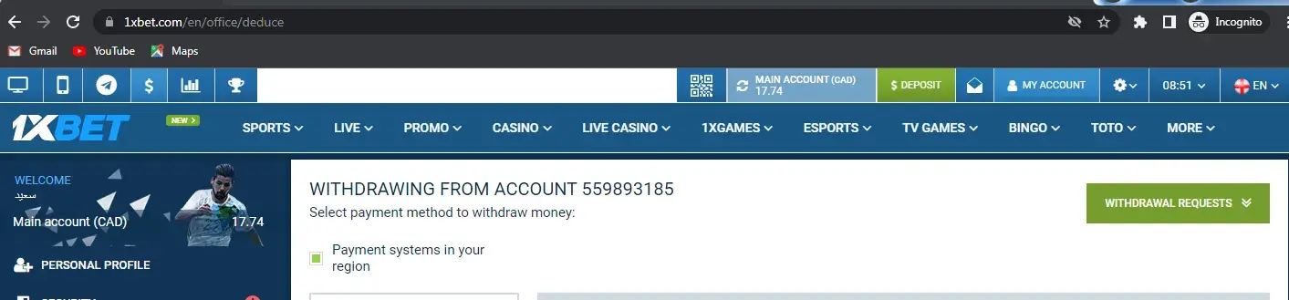I have deposited in 1xbet by BM wallet egypt but it didn’t transfer to my account