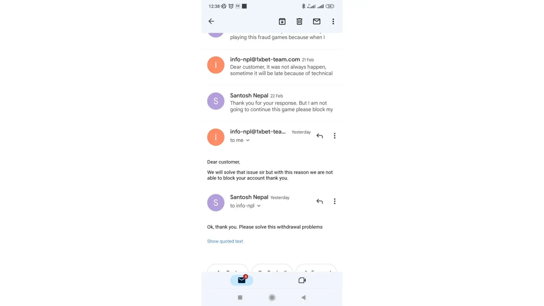 I telling you because I seem you can do something until I am planning to file a case against 1xbet behalf of my legal consultant in state consumer forum and Cyber crime buro an Department of Exice custum GST and revenue department and Audit Department of India.