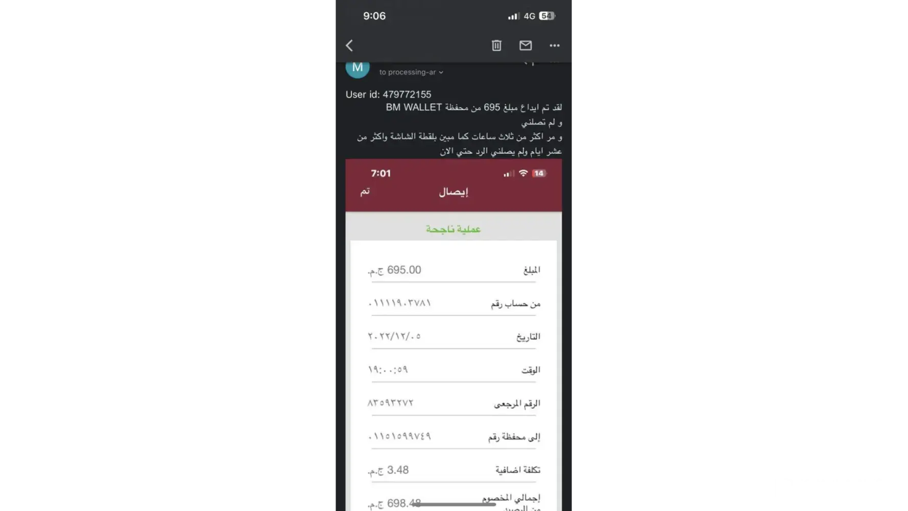 I have transferred 695 EGP by BM wallet egypt but I didn’t receive it in my account id:[protected]