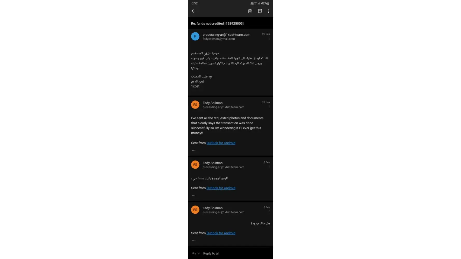 Sir I have sent all documents to you in this email. I gave everything including the transaction screensort. But again why do you say to send everything by mail to email. Why do you give so much cost to people? I don't want to give money, I think you are doing this. I appealed 2 times and gave everything. I gave my ID