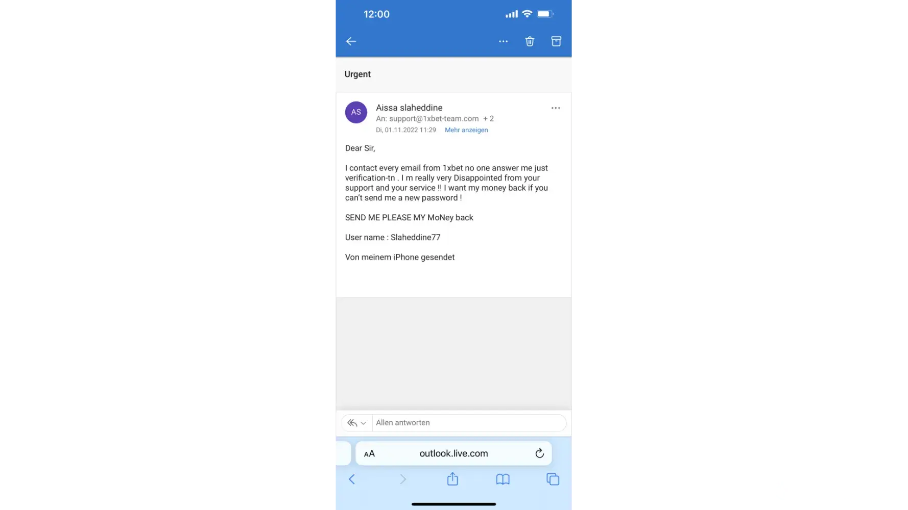 Ohhh :) I have the same case since 6 Month they block my account with the first deposit 300 Tunisian dinars … after that no answer for my emails …. Telef support they say be passion and then they block my number …. Always the same case with all client about 1xbet … they block the money and they ignored you … is my mistake that I open Account in such company … very miserable really …