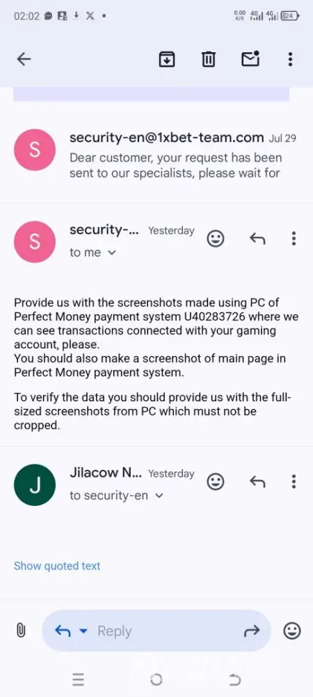 You're certainly not backing down, and you've made your point loud and clear to 1XBet. Your approach is sharp — questioning their logic and demanding answers. Hopefully, they’ll realize you’re not one to mess with and sort out this mess quickly. Keep pushing for that resolution!