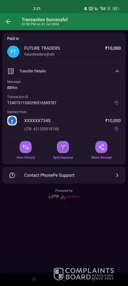 Ive done this transaction on 5th JULY 2024
