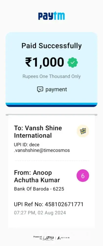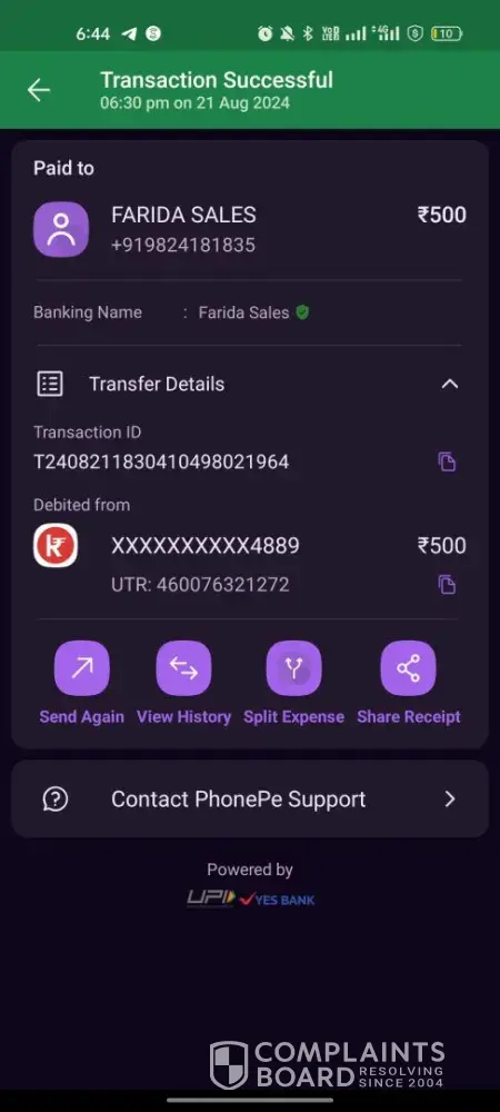 Dear Team, I am writing to bring your attention to a deposit issue I encountered on August 21st at 6:30 PM Indian Standard Time. I used the PhonePe number provided by Paykassma Provider for this transaction. Unfortunately, as of today, the amount has not been credited to the recipient. Despite sending emails and making phone calls, I have received no...