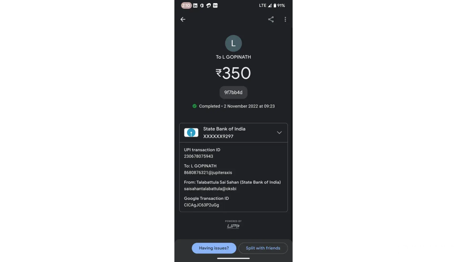 Transaction id :9jc10tmfdh