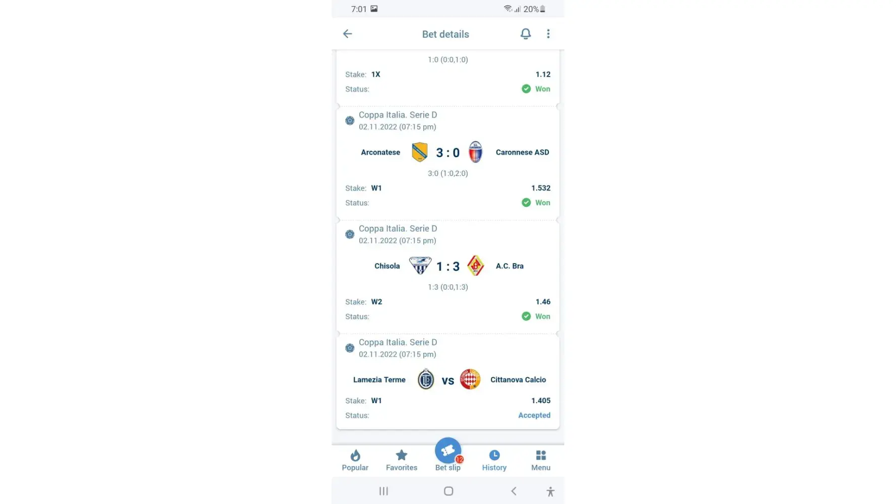 Incorrect bet results.