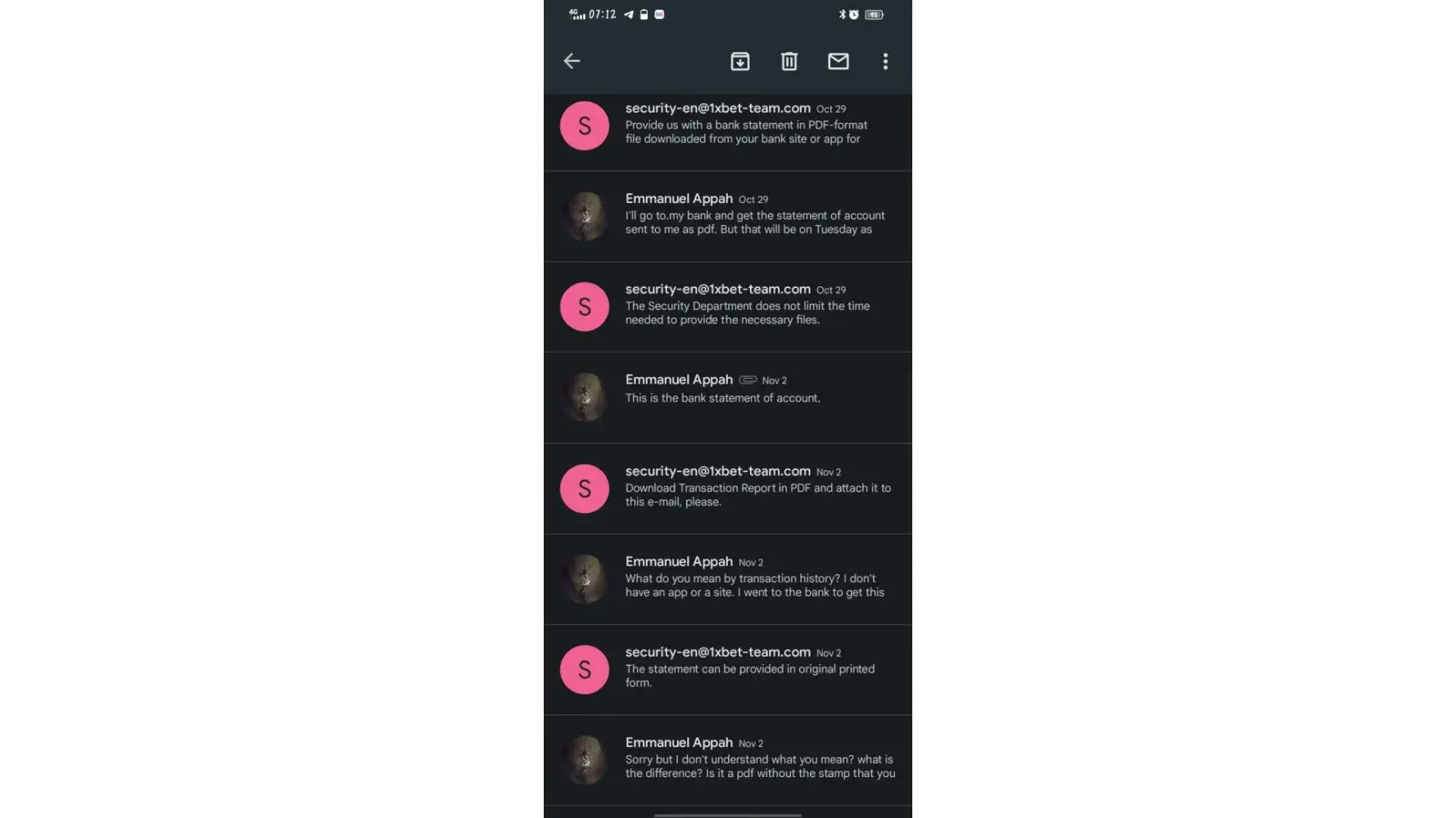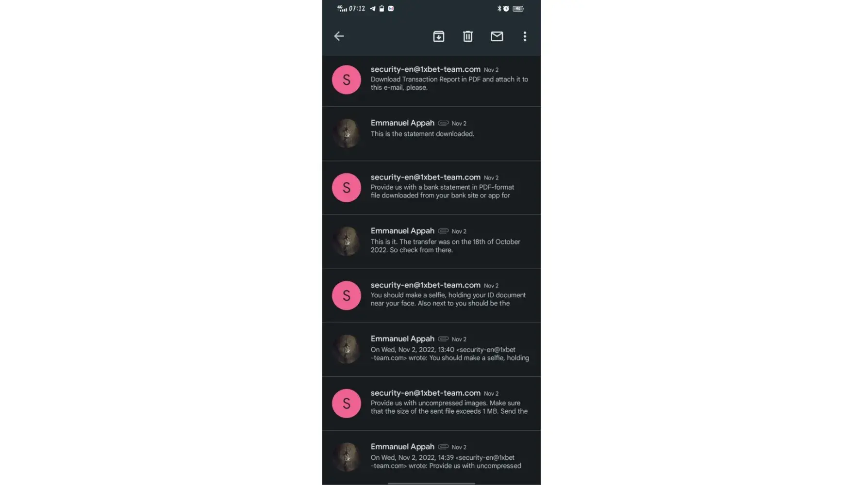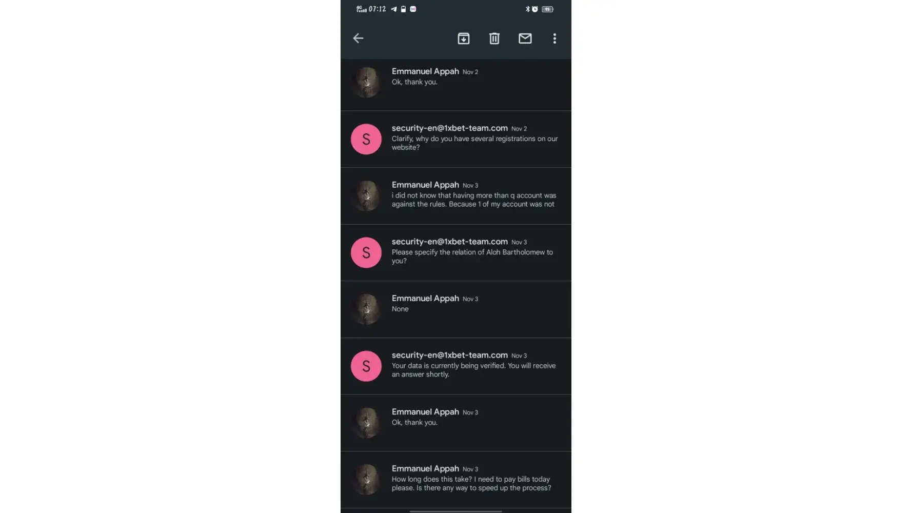 I am writing/forwarding this email to as complain of 1xbet security team.I have sent almost 40 email to your security team regarding verification of docs.I do not know yet why securty team is not verifying my docs.I am sending all my docs to you also.u can check my docs are legal and valid.pls escilate this matter to higher authority.allow me withdrawal
