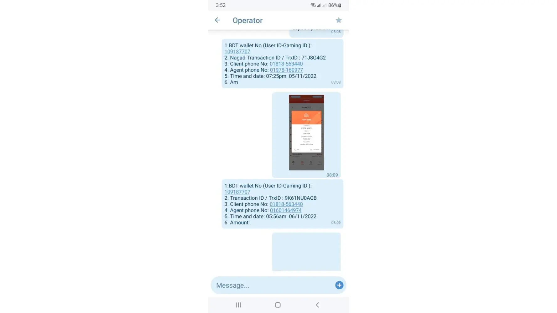My player id is [protected] date12/10/2022 at 9.53 am I have deposited 3000/ from digital wallet client number:[protected]
