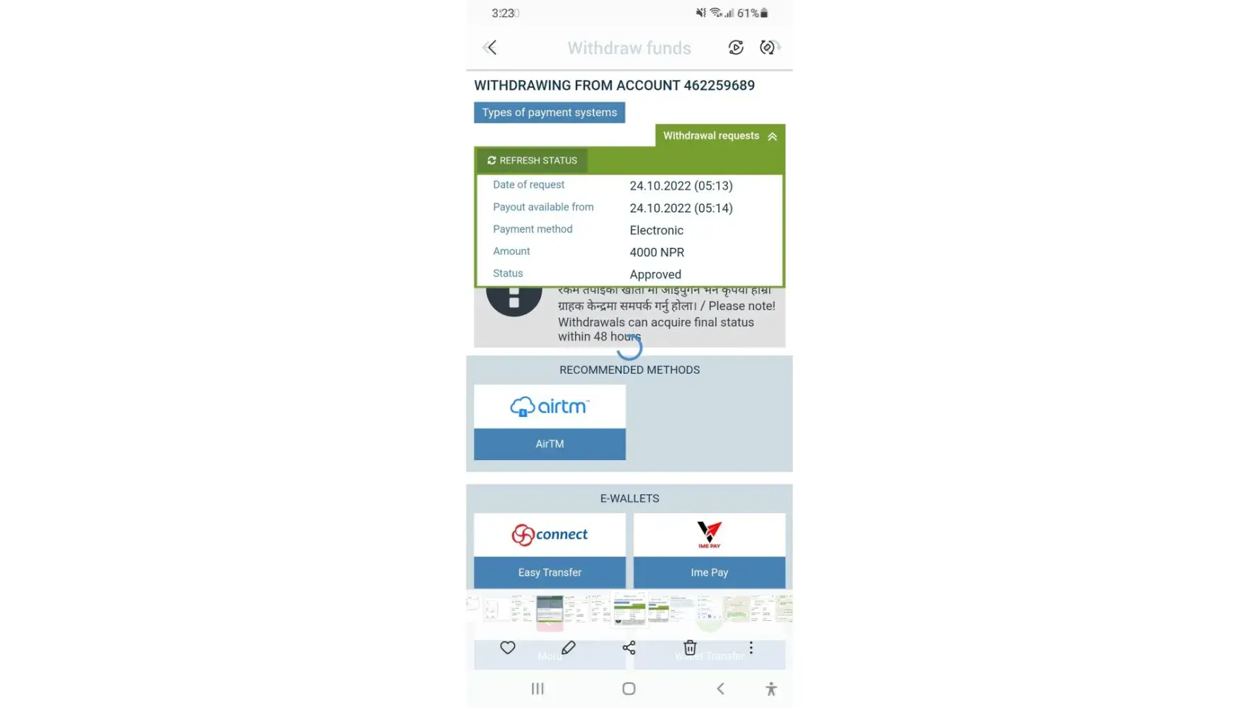 Withdraw amount of 25k didn't received after three days of request