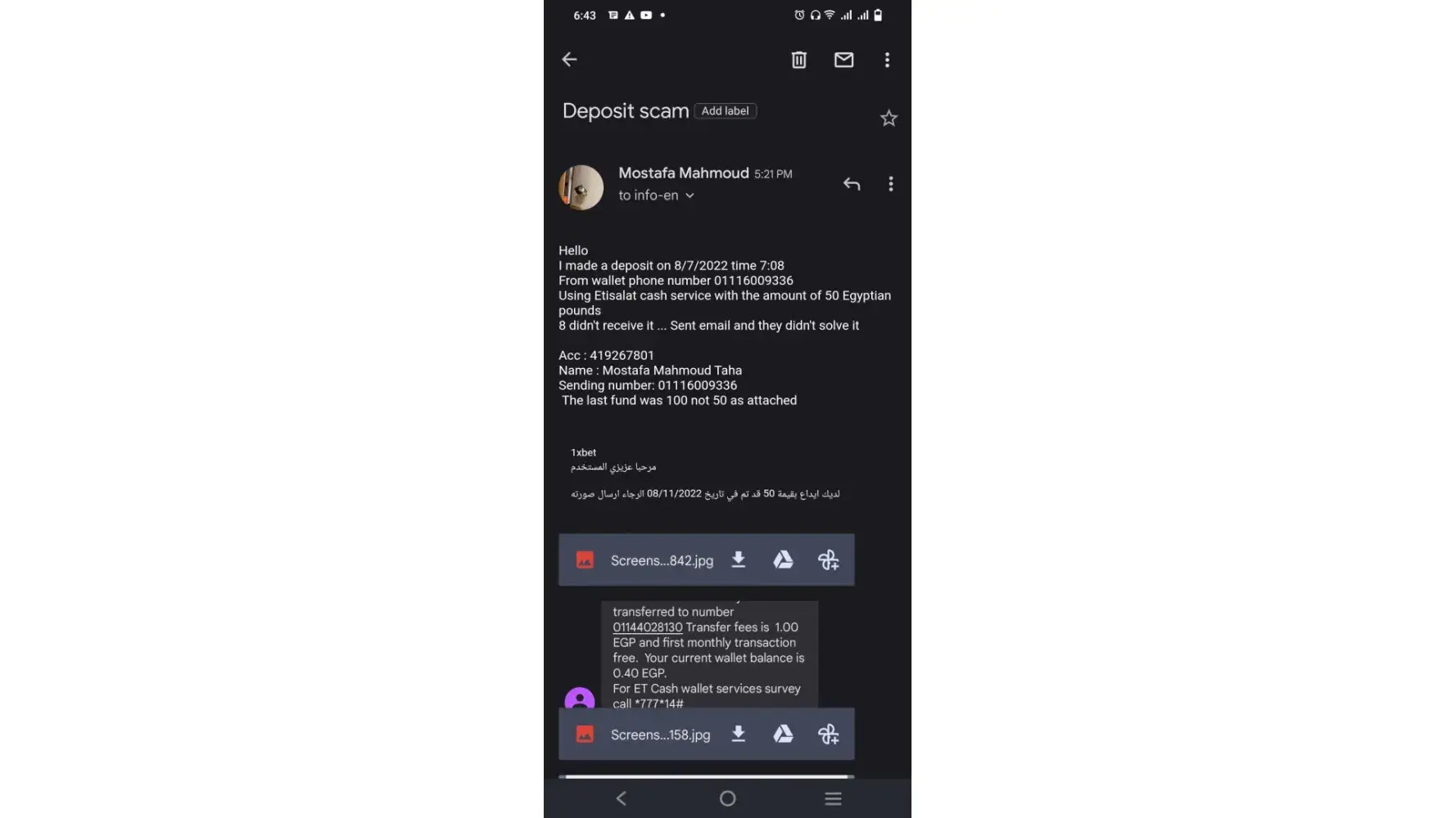 I have been scammed of my deposit by 1xbet