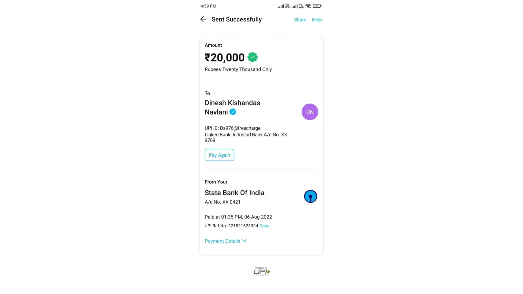 On 6 August i deposited 20000 not credited my account.. i have sent bank statment and all screenshots of payment.. didn't resolve my issue yet . You support team said it's hold by bank.. i sending screenshots below. Please check and resolve my issue..