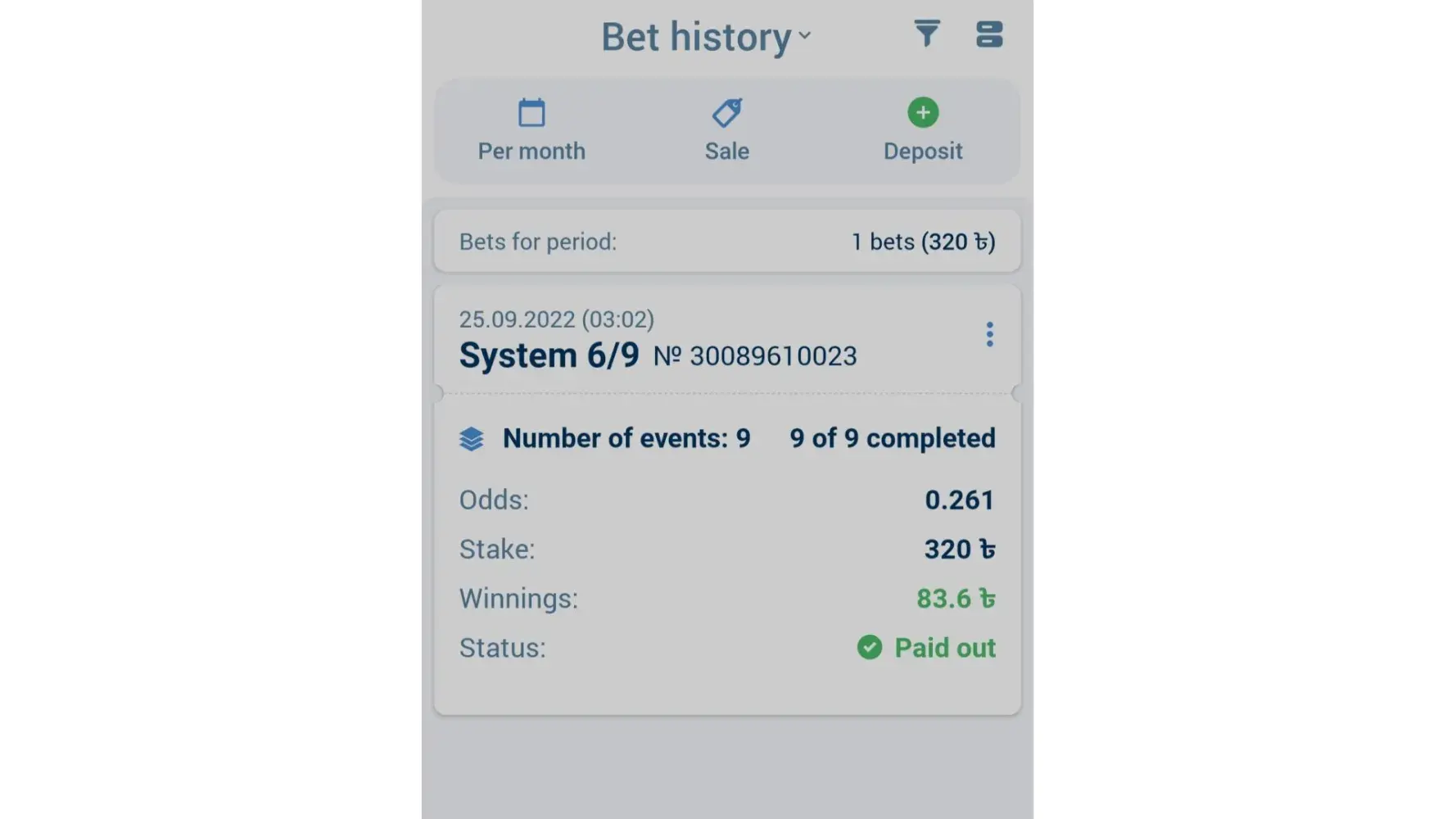 On last 25/09/2022 (03:02) I made a multi bet with system setting (6/9).