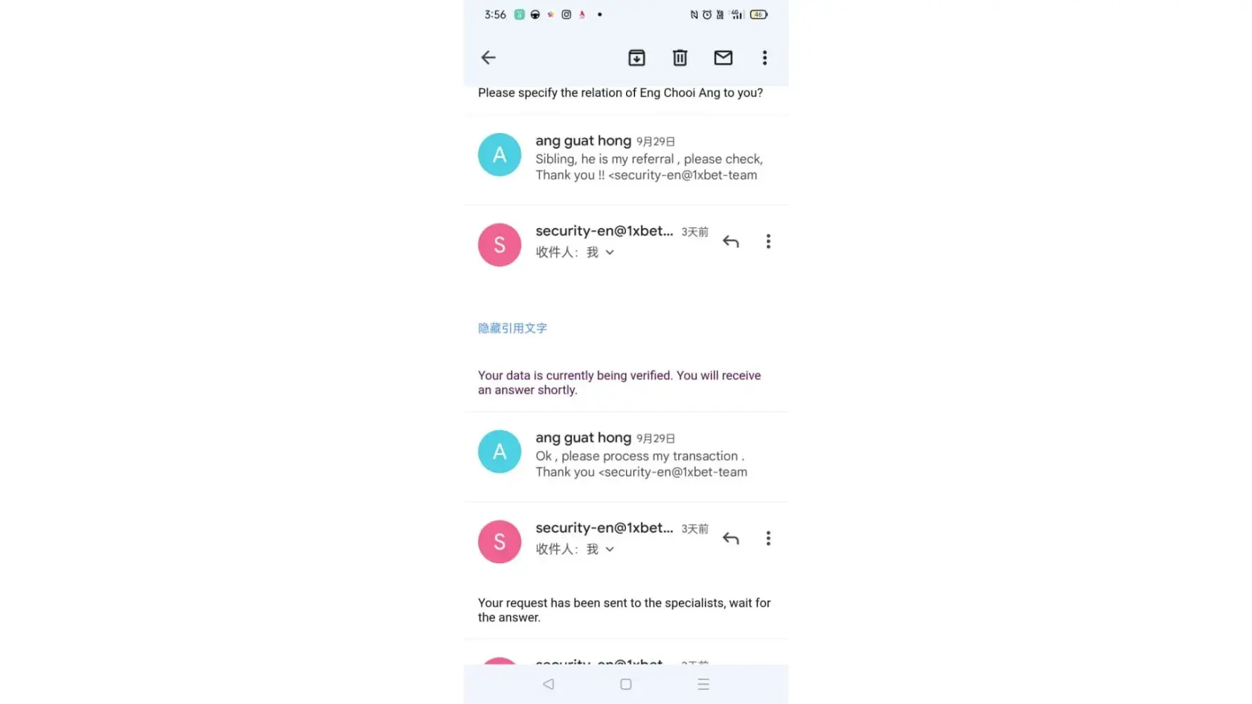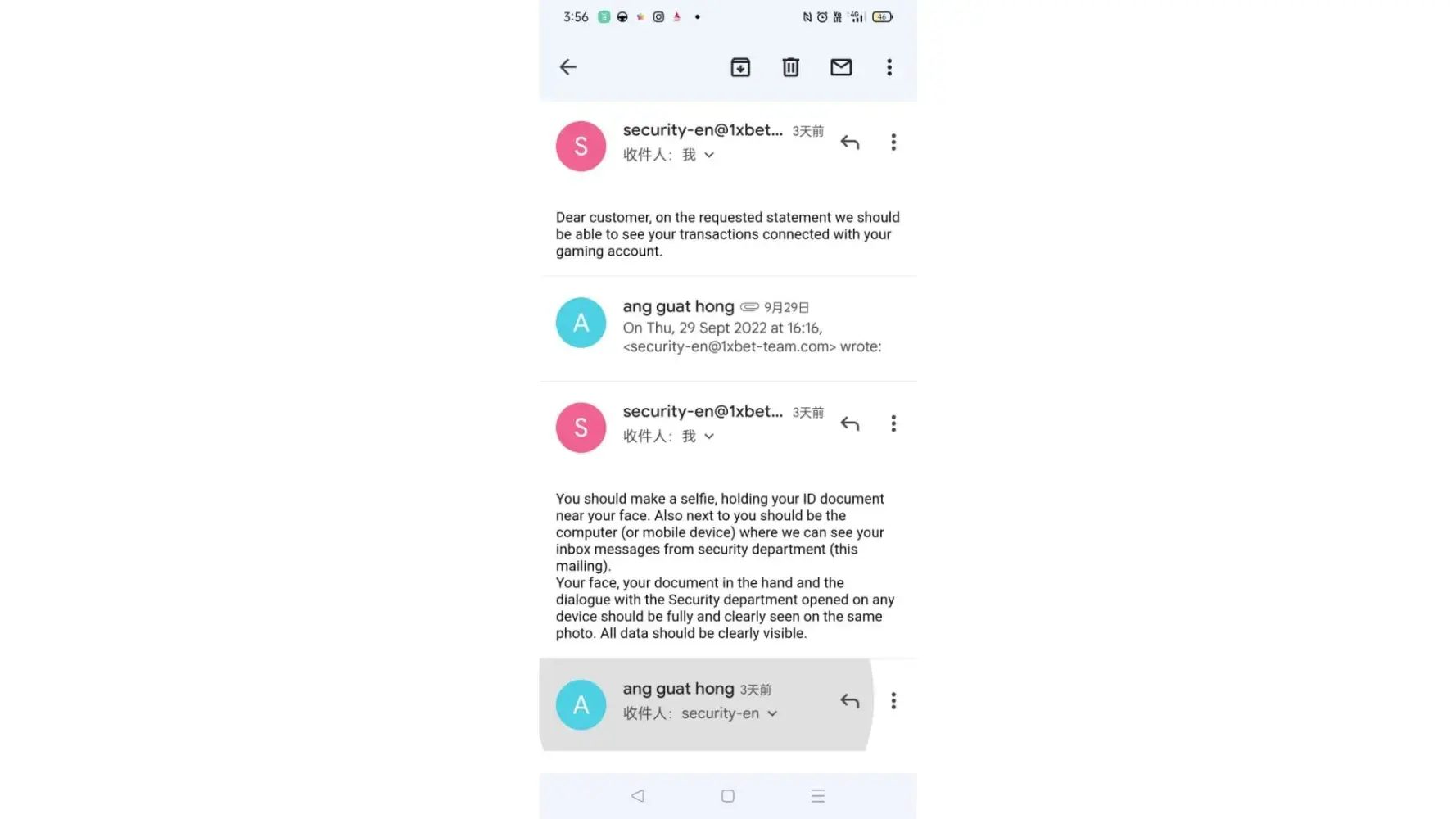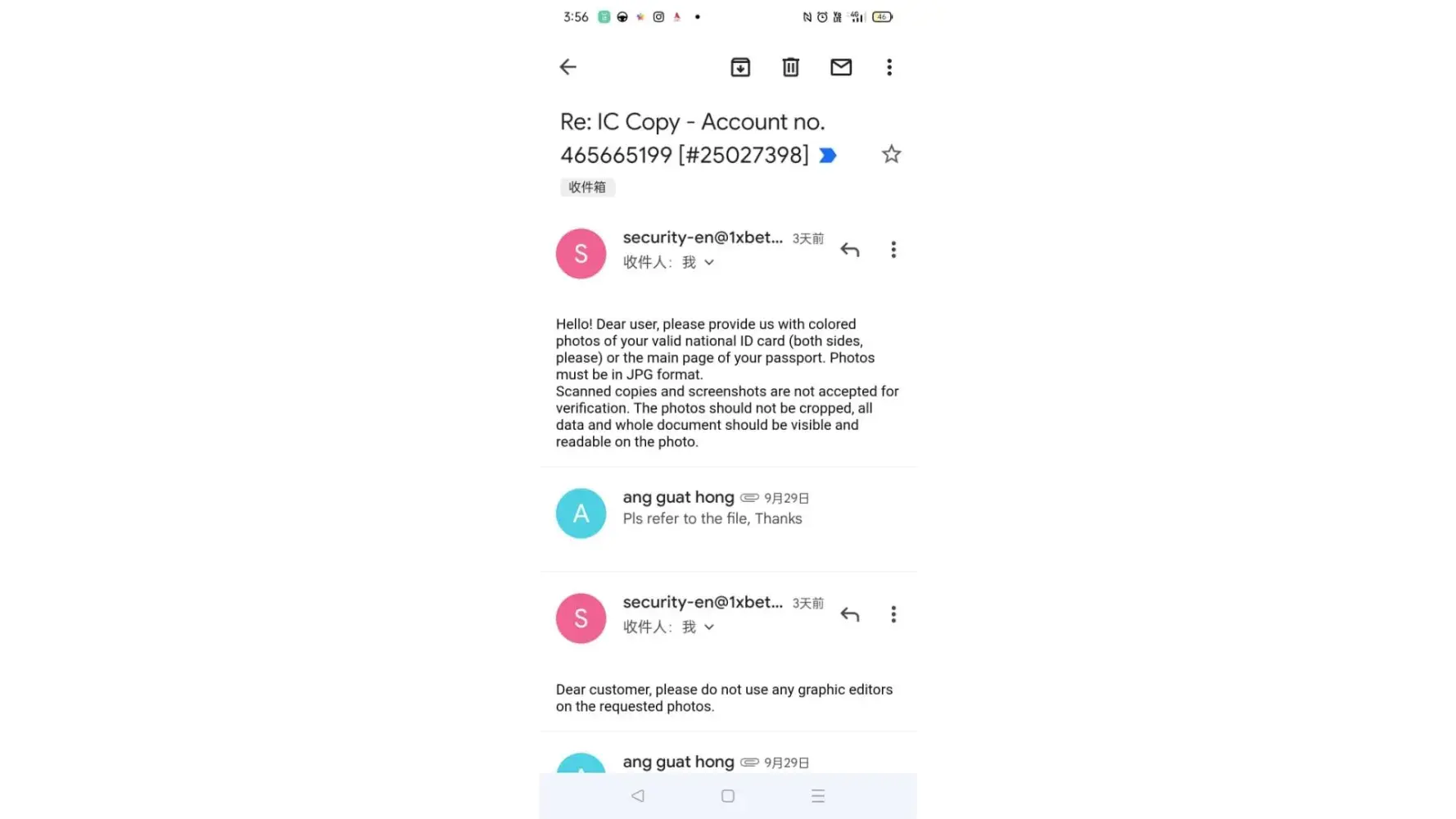 on 29/9/2022, i have some winning and perform my withdrawl, i have meet the turnover and should be able to do my transaction. Evetually the customer service email me and ask me to send my Personal Identification Photo, after that request to verified me by using selfie together with my ID and email. I do as by instruct.