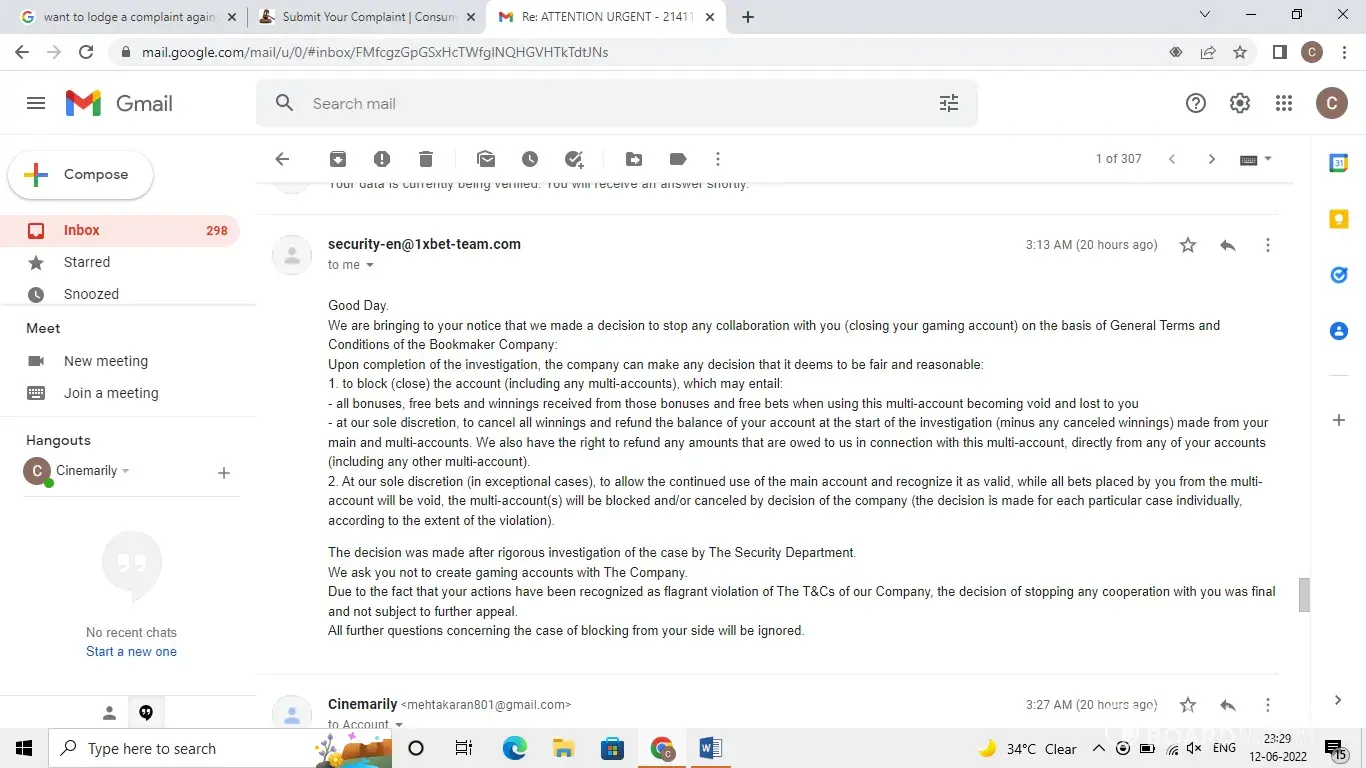 I have been using 1xbet.In from past 5-6 years they were doing fine before last month when I won some money with their company, I had a main balance of 334000 & above, main balance funds – real money deposited + winnings, which is real money depoisted/won by me, they tried to first reject withdrawals & removed all the transaction history from my 1xbet account deliberate attempt to mislead me (they usually show in account transaction history last 2 months trasanction but in my case the account was only showing transactions for last week) when they tried to frame they removed the trsaction history & rejected withdrawals & asked me to send documents to their security team, then they asked me for my idenity documents with face holding documents in hand i.e. Pan card, aadhar card I passed that idenity check, they tried to mislead me by asking me the deposit slips by mentioning wrong time & date, asked me to submit deposit slips thereby costing me more time to look into every transaction I had with them I submitted all the deposit slips I had, they reject all of them saying your documents can not accepted this went on for 2-3 days, they asked me to submit again the transaction history from bank website & somehow I cleared their deposit secuirty check, all the deposit slips were genuine & legit, then they asked me to hold my phone /laptop & click a selfie showing the converastion we had with my email open & holding documents in one hand along with face, I also cleared that check, then they asked me for a random name & asked me what is the relation of me & that person speicfically, also mentioned my father name I said clearly you can check in my documents my fathers name who also holds account with them from 4 years but I don’t know that person that was random like before they were kept on asking for false deposit slips by mentioning wrong date & time as they had already removed the transaction from my 1xbet account deliberate attempt to forfeit if in case I submit any wrong slip or transaction but they failed in their attempt. They had no issues from 4 years when my father was having a account with them & now they rejecting my withdrawal saying you have multiple accounts, also I want put a light on the fact that when I won with 1xbet my father was out doing farming & he was offline & also didn’t placed any bet with them during that month clearly not singe bet that month not a single deposit withdraw transaction with 1xbet.In that month, they hav now blocked my account by saying you have abused the website norms. Is this a fair ground to block & forfeit my winnings when in fact I won some money with my real money deposited from my bank to website, they had no issues before when my withdrawals were less than the money I was depositing & clealry saying losing with them.