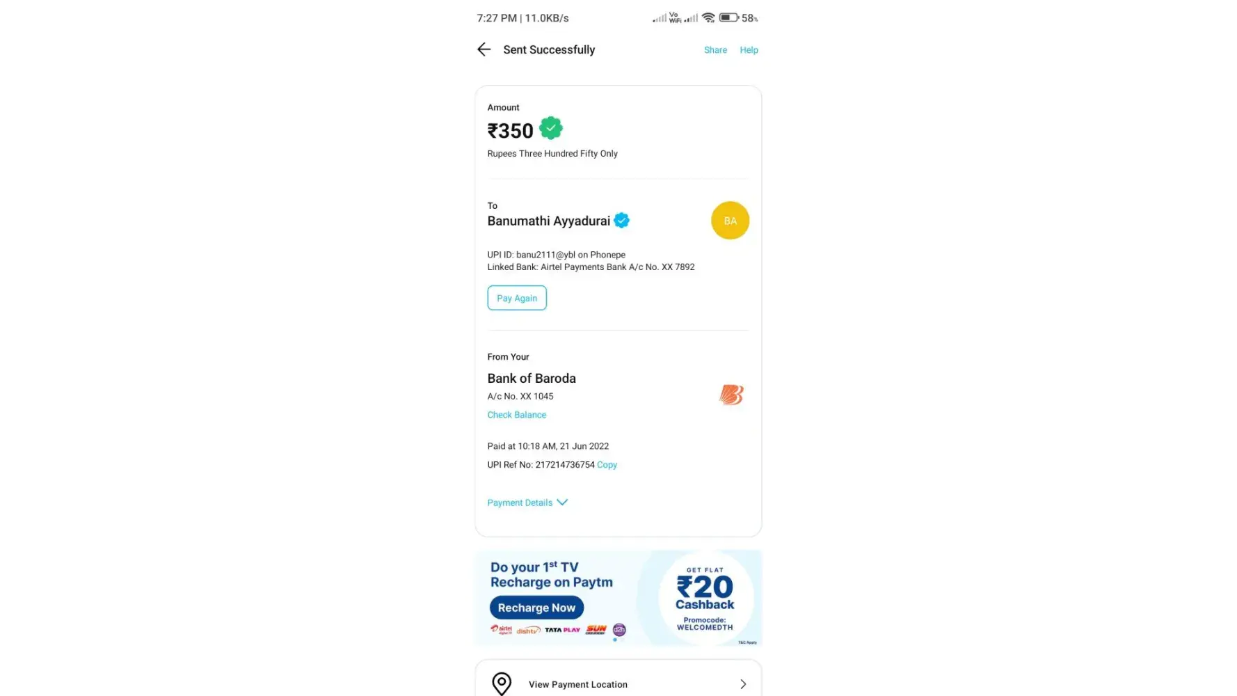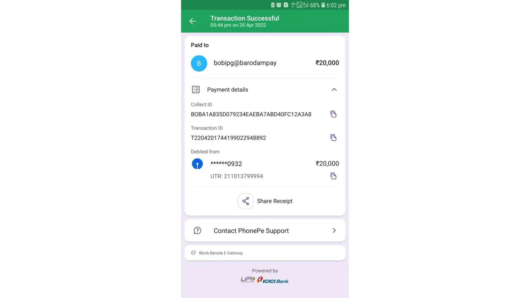 I have shared payment receipt.
