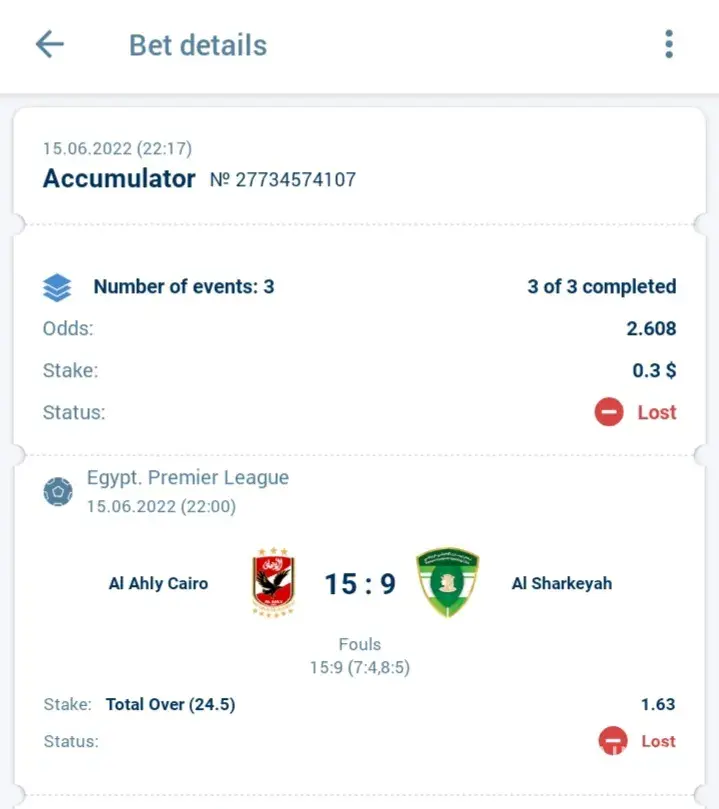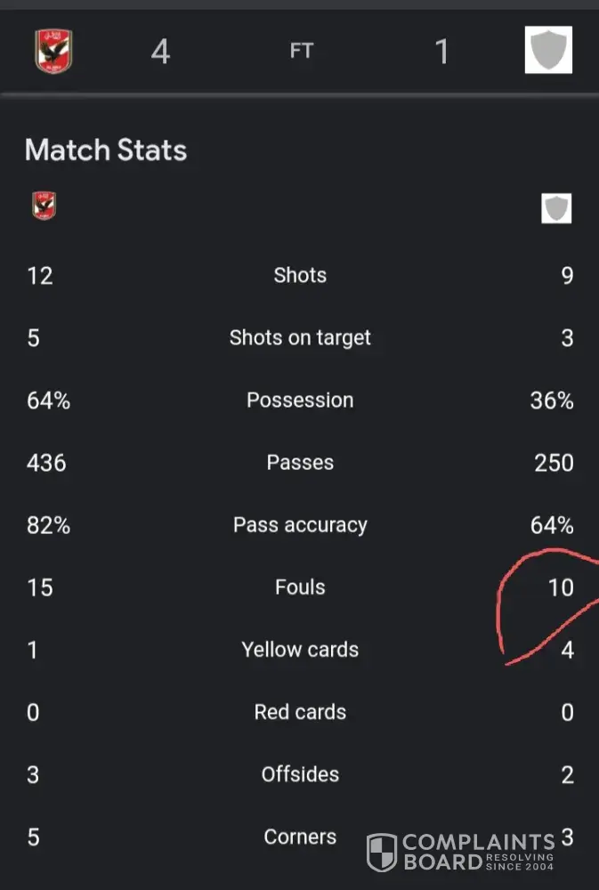 I complained mistake for the result of fouls match between al ahly sc vs alsharkeyah I have seen all scores such livescore goole foul numbers was right so my need to review the fouls of this match