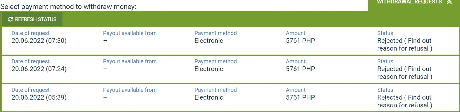My withdrawals are getting rejected\Denied by operator and unable to withdraw. And not getting any help through Live Chat other than "Robotic Messages".