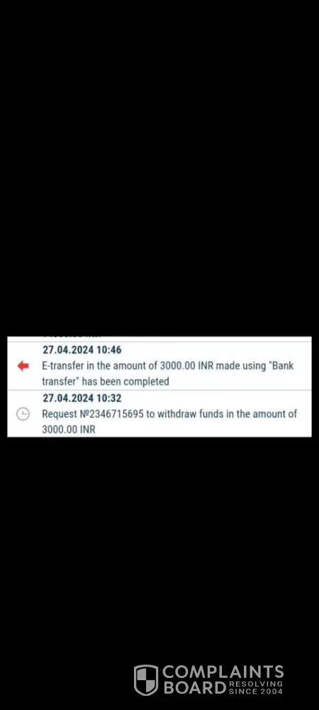 My account number is [protected]. I made a withdrawal of amount 3000 on 27th April. After few mins I got the confirmation of the withdrawal but I haven't received the money into my bank account. Please find the screenshot of the withdrawal.