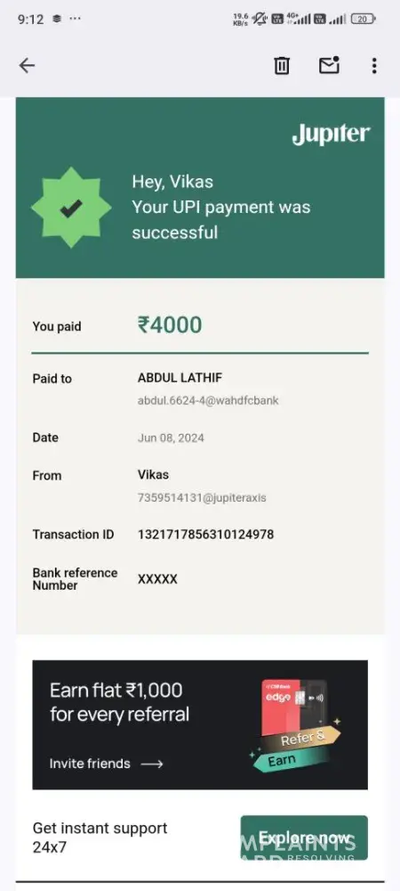 Not solved it's been 6 days 5000 INR Didn't refund.