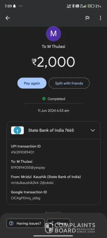 UPI Transaction ID : [protected]