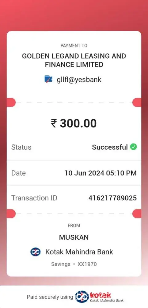 On 10 june 2024 I deposit 300rs two times using UPI QR option but I recieved only one of them ... But the customer care executives told me that both the transaction are successful but it's not true only 300rs recieved one of the payment was not deposited