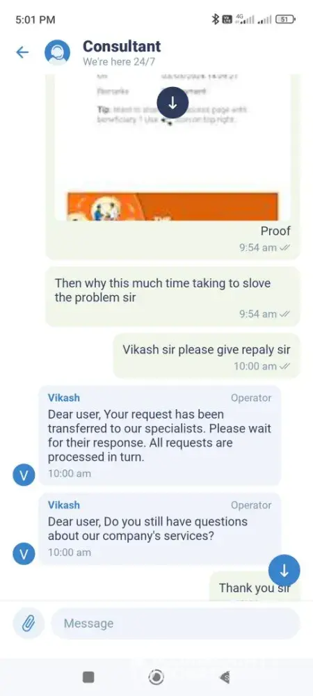 This complaint has been resolved automatically due to user's inactivity.