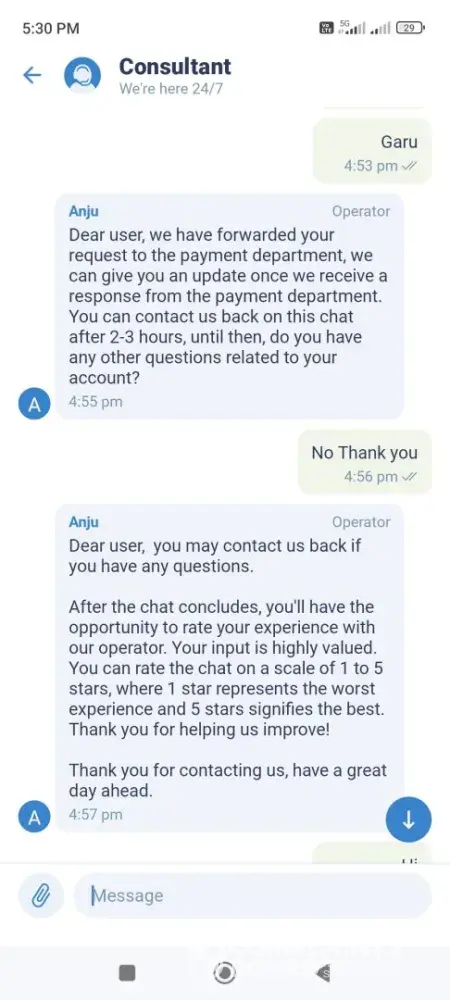 We didn't get any response from payment team "