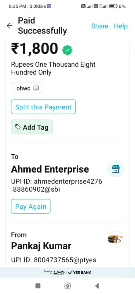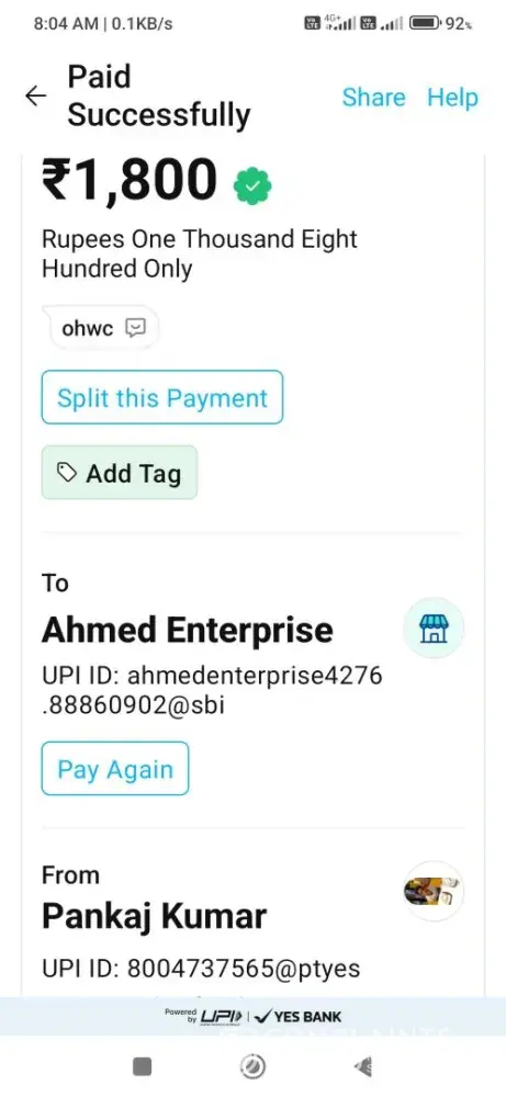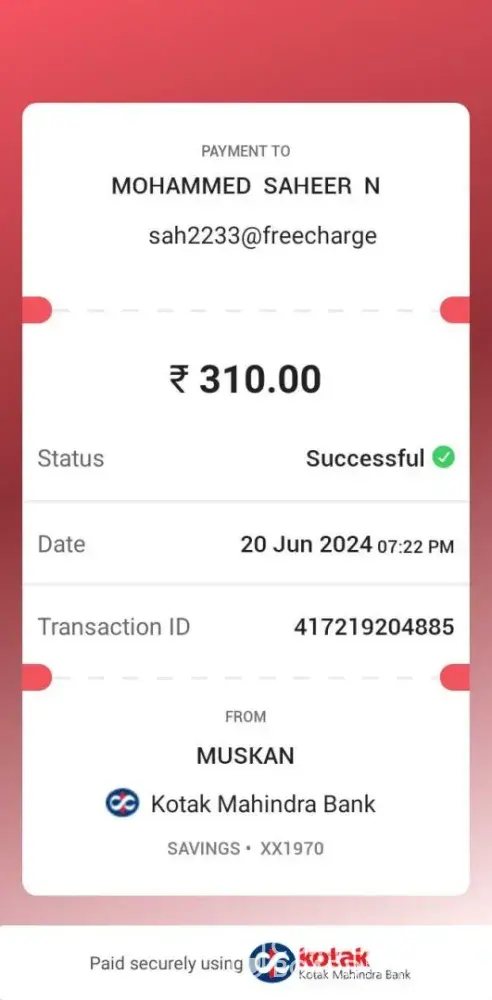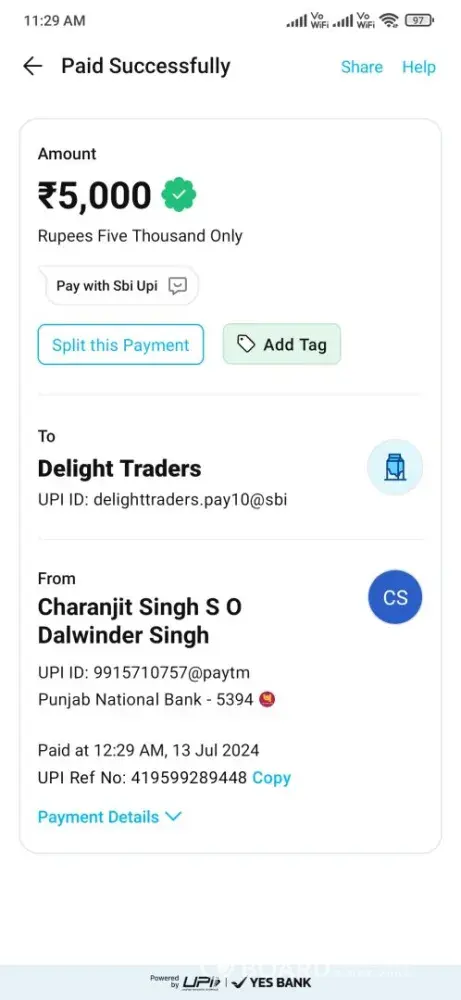 Payment system used: UPI Fast