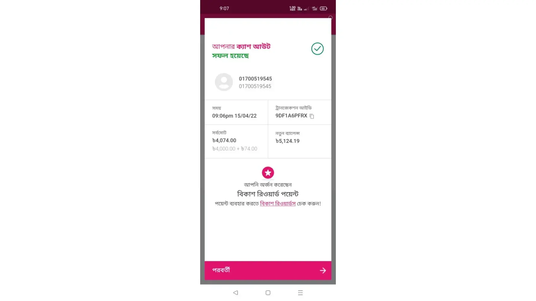 Desired outcome: 1.BDT Wallet No (User ID-Gaming):[protected] 2.Transaction ID/TrxID:9DF1A6PFRX 3.Client Phone No:[protected] 4.Agent Phone No:[protected] 5.Time and Date:09-06pm(15/04/2022) 6.Amount:4000 7.Screenshot