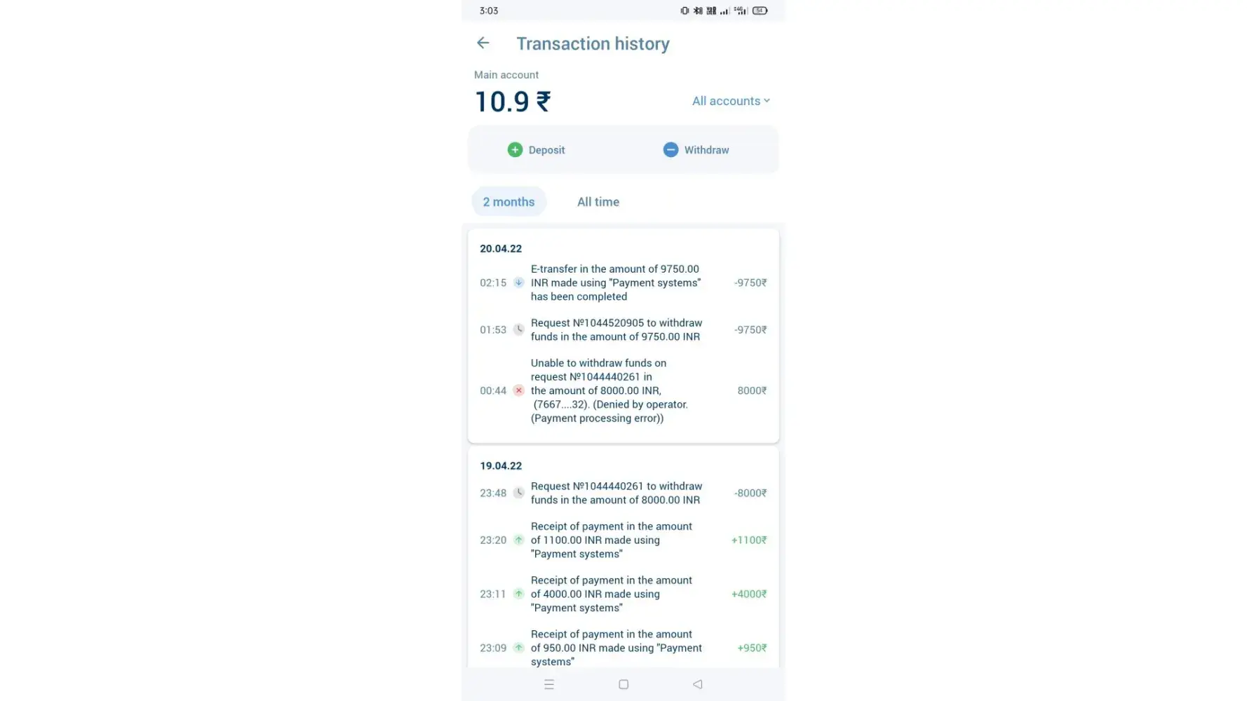 after it after 72 hours asked me to send my deposit transactions by my e-wallet.