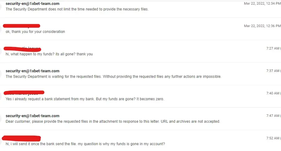 The 1x bet site asked me for documents. I sent the necessary documents to the security team.