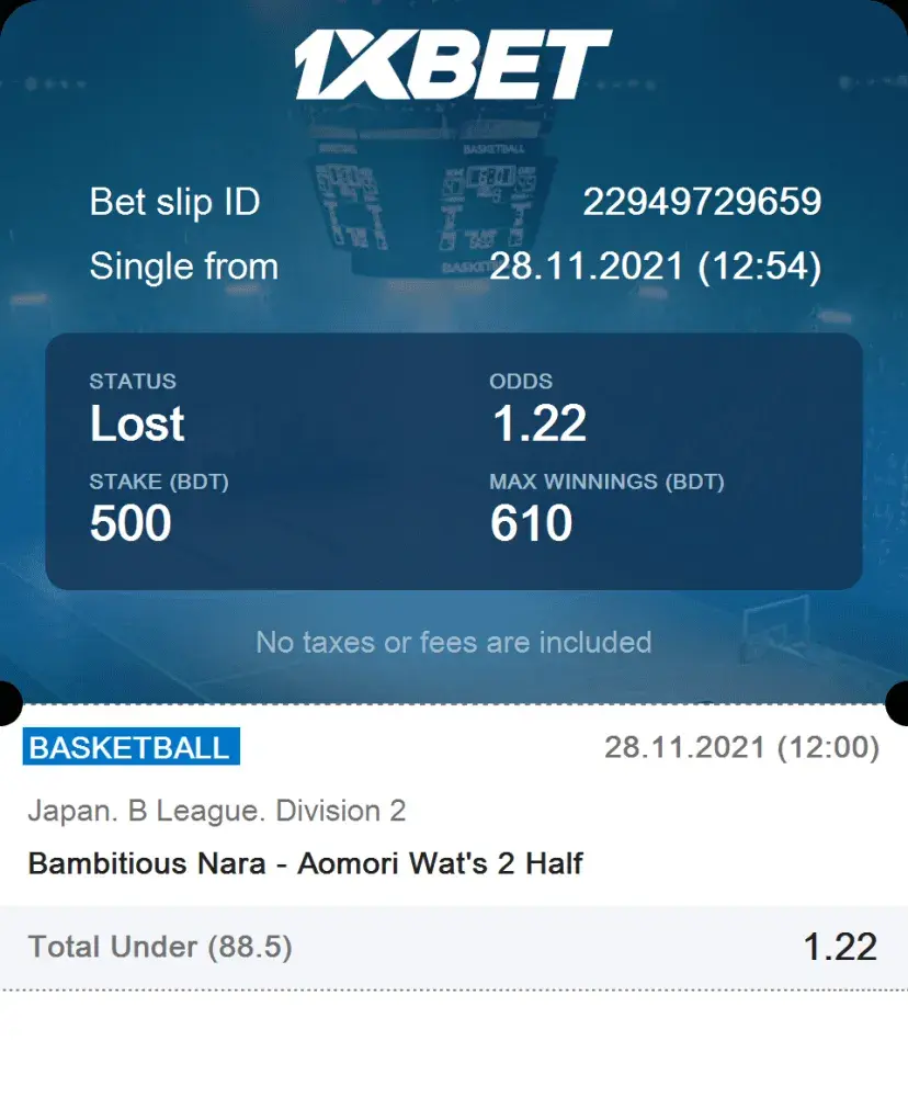 Today at 12:54 pm time in local, i bet on basketball in Bambitious nara vs Aomori wat's match. I bet on (2 half, total under 88.5).when the match finished the bet slip is not setteled.i check on google for correct score and then i ensure that i am win.but after 4 hours the bet slip shows the bet loss, the score was incorrect in last quarter. I again search the match and check maximum website for correct score.all the websites shows same score and only the 1xbet shows different score in last quarter. I bet under 88.5 points, google and others website shows the match finished in total 86 points. But only 1xbet shows total 89 points. I mail there mailing address but not fix yet. I tries to connect with chat but no one replies me.i think they would not solve this problem.