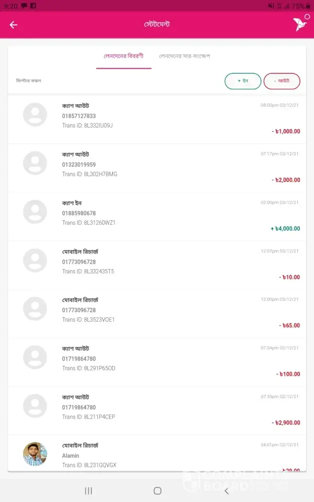 Doesn't show the transaction history of that day. I contacted Nagad Help center but They didn't give me that transaction history.