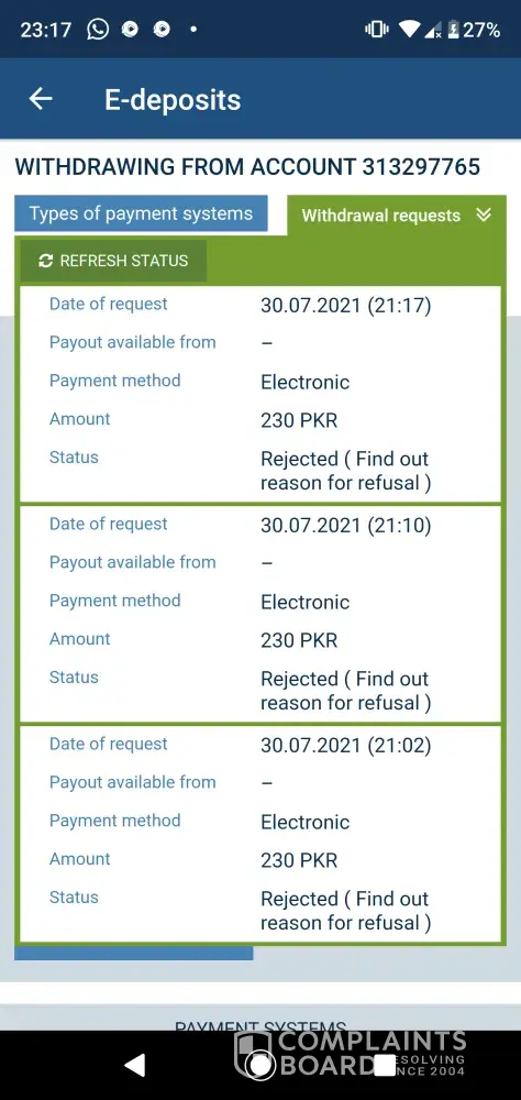 I've deposit by easy way but when i want to withdraw they asked me to verify my account and send my id and screenshots and I've done all instructions and they refused too