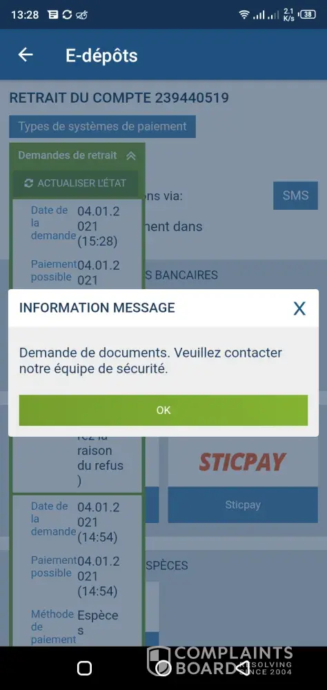 Hi, I have an account on 1xbet, following the winnings, the amount of the account was 205000 fcfa. In January, my account was blocked without explanation, the account is still blocked, I meet all the requirements of 1xbet's security service, for all procedures in my account I was asked to provide the following documents: