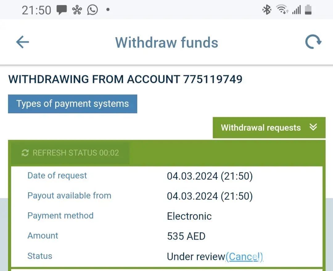 I would like to bring to your attention an issue I am currently experiencing with a recent withdrawal request from my I X BET account . On dated 04th of March, I submitted a withdrawal request for the amount of 535 AED. However, upon checking my bank account, I noticed that the amount has not been credited.