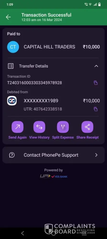 I have been contacting them since morning 2am and till now they aren't give me a correct answer. If they would have been sincere in their work I would hve saved my hard working earning - 10,000 INR