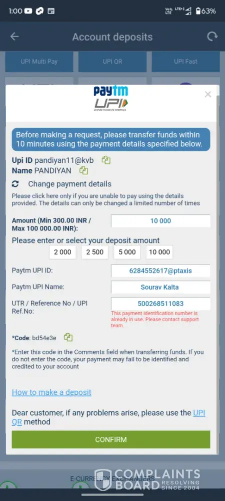 I made a deposit of 10000 on 2 of January but i didn't receive my deposit so i contacted the customer support, so they told me to wait for 24 hours i waited even then i didn't receive my deposit so i contacted them again and they just kept extending the date then for 3 to 4 months they asked me to bring every small detail from bank about the transaction so i bought every possible details. And even after this long i haven't received my deposit please help me if anyone can the only last option after this is a legal action.