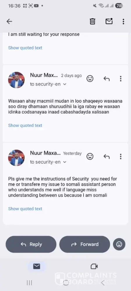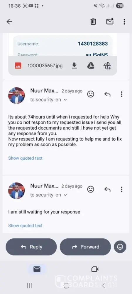 Thank you for responding to me. I have verified my deposit proof since I created the account. I have sent all the receipts of the money I deposited to 1xbet security team. Now I am sending them to you. Please check. But the problem is that 1xbet security team is not responding to my email. Pls try to understand that they are not responding to me. I have been complaining to their email and they have not responded for a month and more.